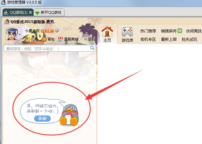 此时,在QQ游戏大厅里,你无法增加游戏,修改后不会保存等等,新安装旧版大厅后,列表无法显示。