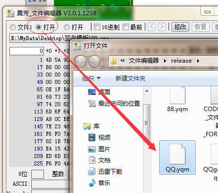 第二步:打开【勇芳文件编辑器】,将文件拖到编辑器上,点击更多
