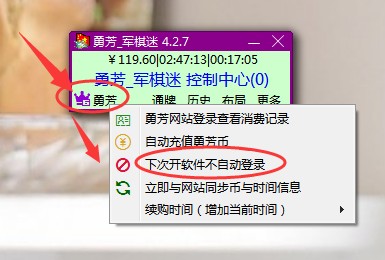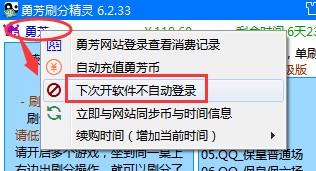 在软件中点击账号或时间,弹出菜单,选择不自动登陆