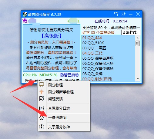 还有一个方法是,在刷分器高级版,点击帮助,开启一键进房间
